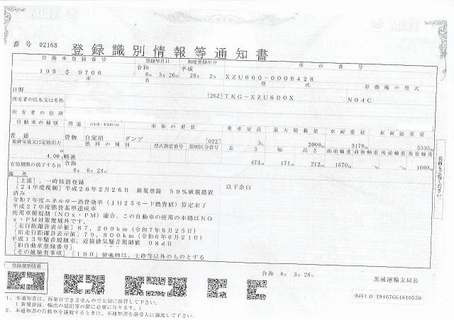 | 車検 | 抹消 |
