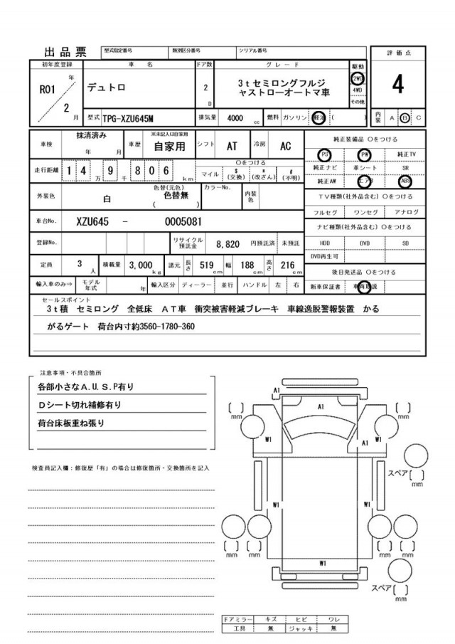 価格には保険料、税金(車両本体の消費税除)、リサイクル料金、リサイクル預託金相当額、登録、納車、陸送等に伴う費用等は含まれておりません。