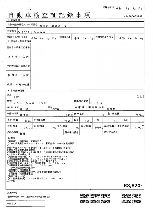 | 車両総重量 | 7,995kg |