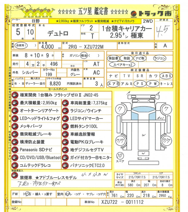 1台積みキャリアカー☆フルフラット(極東フラトップゼロⅡ)☆ラジコン☆ウインチ☆オートターンリアゲート☆衝突軽減ブレーキ☆車線逸脱警報☆横滑り防止装置☆LEDヘッドライト☆ナビ・フルセグTV☆バックモニター☆ドラレコ☆ETC2.0☆AT