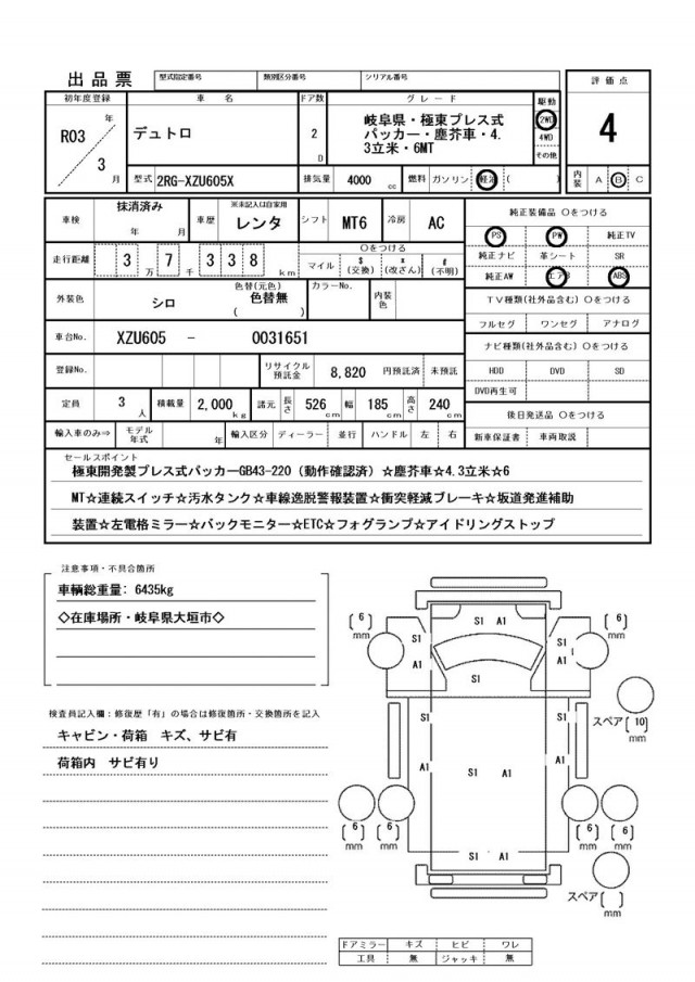 価格には保険料、税金(車両本体の消費税除)、リサイクル料金、リサイクル預託金相当額、登録、納車、陸送等に伴う費用等は含まれておりません。