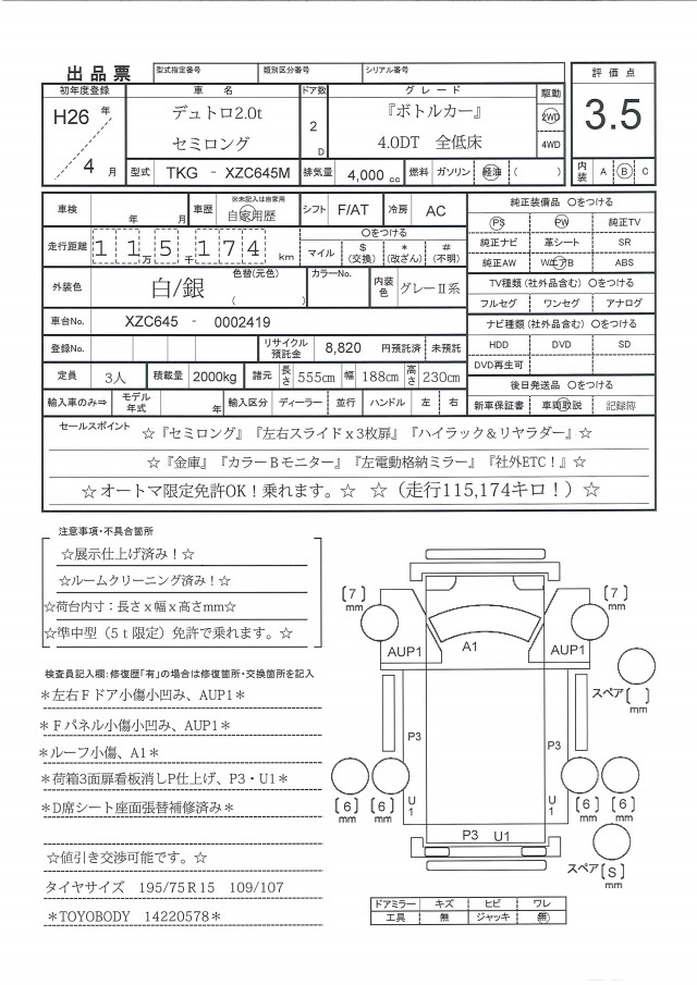| サイズFR | 195/75R15 109/107 |