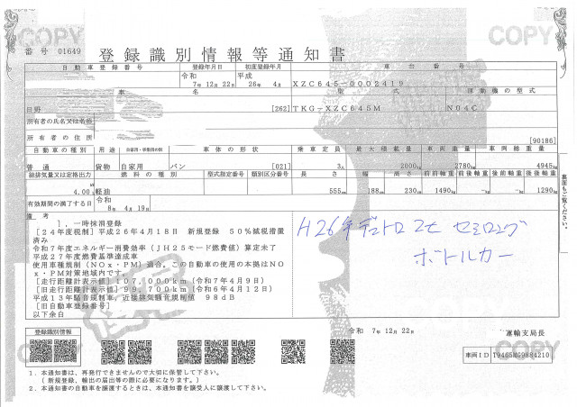 | 車検 | 抹消 |