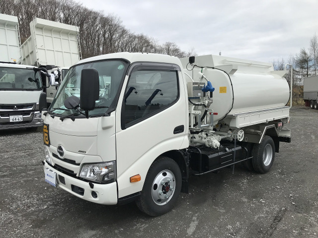 タンクローリー(新明和LP37.5-61K) 3.75KL 2室(2+1.75) ノズル 自動ホースリール デジタル流量計 4WD リヤフェンダー 消火器BOX ステンレス製 スコップかけ 脚立かけ付き 消防書類有