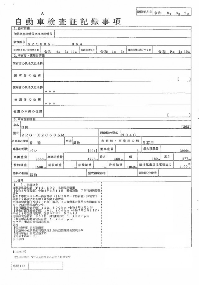| NOX適合 | 適合 |