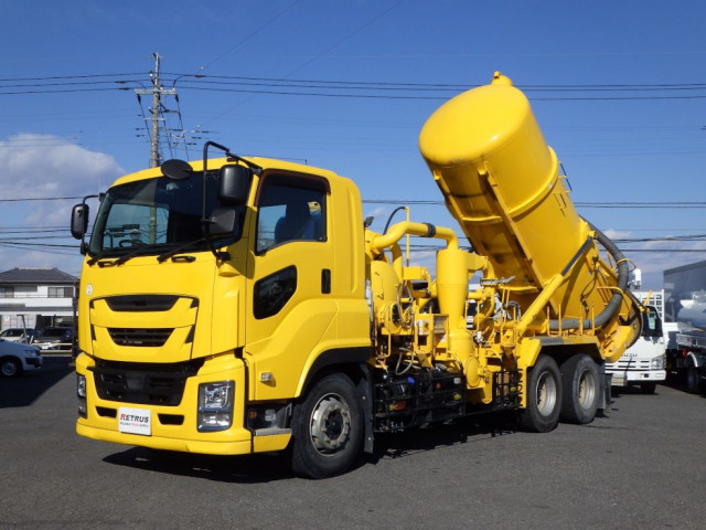 ベッド付 汚泥吸引車 最大積載容積8900Ⅼ 吸引風量40㎥/min 吸引静圧-96kPa 圧送圧力0.07MPa ステンレス工具箱1か所 タイヤ灯1対 タンク内部ステンレス鋼材 3次キャッチャー 4次キャッチャー 立上マフラー バックアイカメラ アナログタコグラフ取付 坂道発進補助 車線逸脱警報 衝突被害軽減ブレーキ 尿素