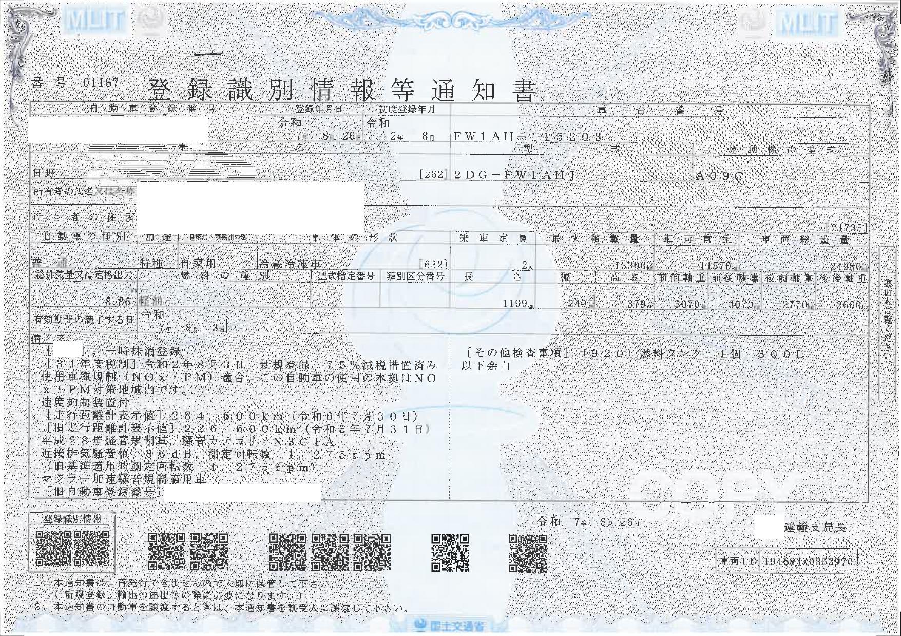 ※抹消車両は、登録時最大積載量が減トンされる可能性が御座います。