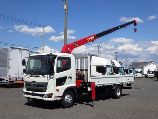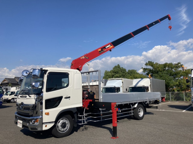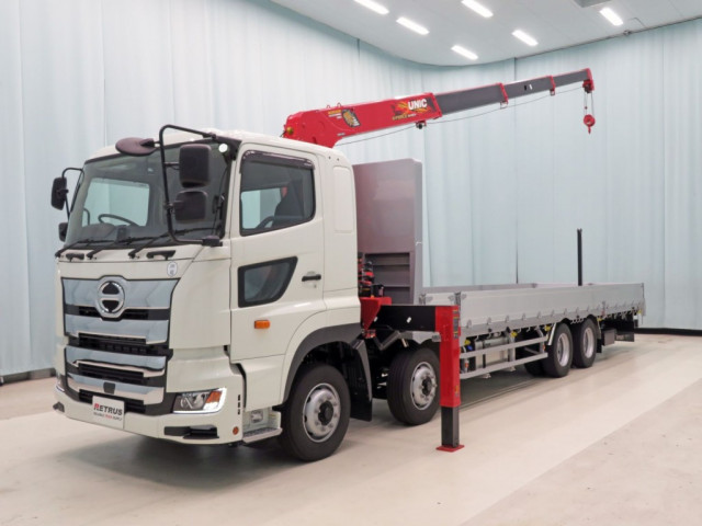 未使用・4軸低床の簡易クレーン付が入荷いたしました! ミッションはMT7速・エンジンは380馬力・電磁式リターダがついております。 荷台内寸は(L=8.80m、W=2.36m、H=0.38m)で積載量は12,900㎏、アオリはアルミブロック製です。 クレーンはユニック・4段・2.9t吊りのラジコン・フックイン付きです。 ETC・タコグラフといった電装部品は予めついております。 4軸低床でボディー長・積載量も申し分ない一台です。 車検はR7年11月27日迄付いています。是非この機会にお問い合わせください!