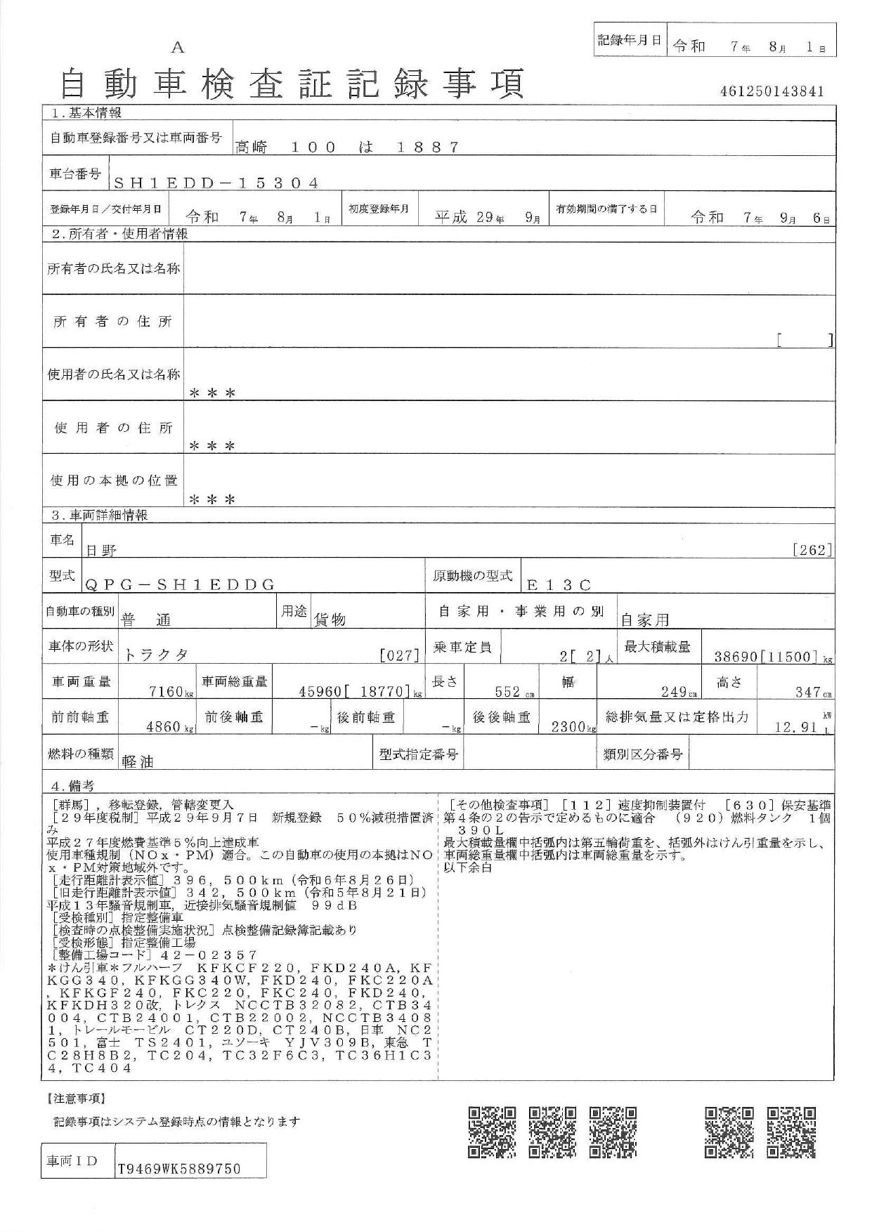 キャブ再塗装してある塗装たれ有 Fグリル小キズ 右クォーターパネル看板跡 左右ドア看板跡 左右コーナー看板跡 左右リアフェンダーキズ リアバンパー小サビ マフラー、下まわりサビ フレームサビ有 Fガラス飛石多数有、車検可 修理跡2ヵ所有 エンジンサビ有 キャブ裏サビ有 左ドア灰皿ふた破損