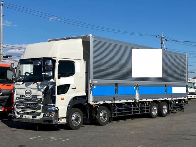 ハイルーフ・キャブメッキ・4軸低床・現行顔のアルミウイングが入荷いたしました。 ミッションはプロシフトでエンジンは380馬力、電磁式リターダー付となっております。 荷台内寸は(L=9.61m、W=2.38m、H=2.62m、門高=2.52m)で積載量は13,500㎏とれておりました。 キャブは前回りにメッキ多数、アルミホイール装着されており、サイドバンパー・丁番などにステンレスが使用 されており、とても煌びやかな車両です。 ぜひ、お問合せ下さい。