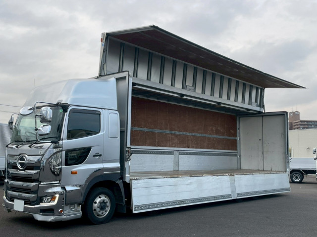 3軸高床・1デフのアルミウイングが入荷いたしました。 ミッションはプロシフトでエンジンは380馬力です。 荷台内寸は(L=9.61m、W=2.40m、H=2.44m、門高=2.37m)で積載量は13,000㎏とれておりました。 キャブメッキがしっかりとついており、導風板・サイドスカートがついているため燃費よく走行可能な一台です。