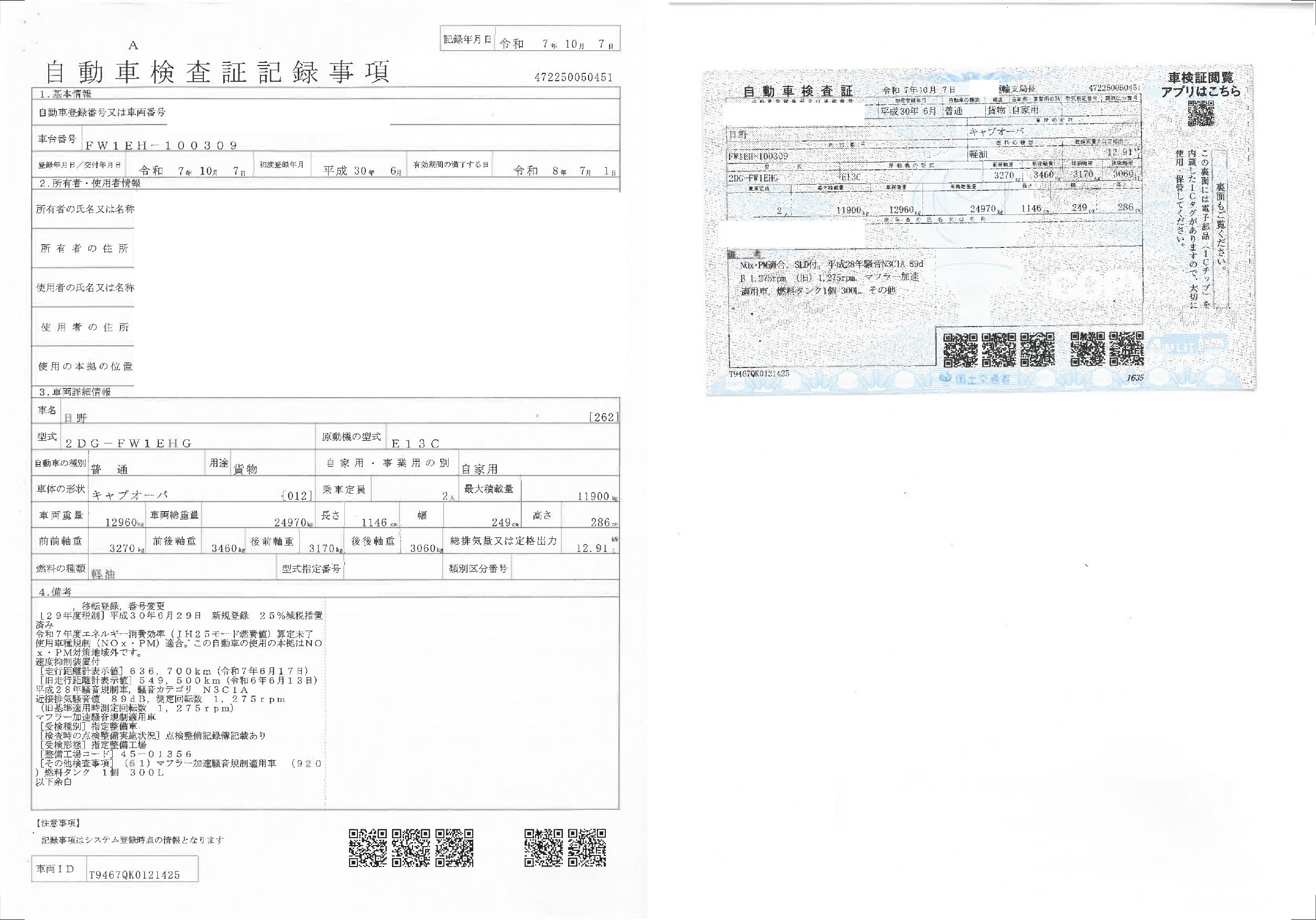 ※抹消車両は、登録時最大積載量が減トンされる可能性が御座います。