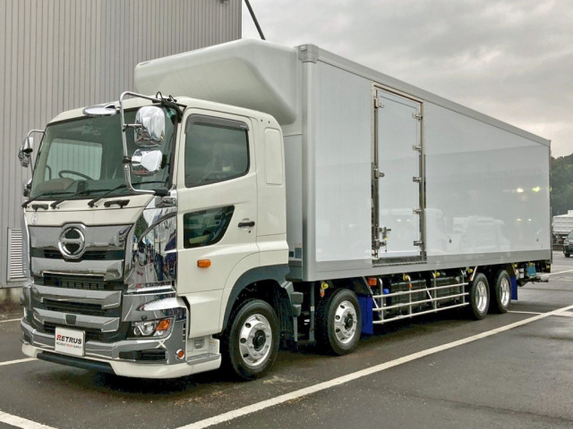菱重製-35℃仕様のサブエンジン式・スタンバイ付き4軸低床冷凍バンです。 床形状はアルミ製 I 型キーストンで内寸(L=9.39m W=2.31m H=2.35m) ラッシングレールが2対・ジョロダーレールが4列ついております。 断熱材の厚みは前・天井・床100mm、横・後扉75mmm、横扉50mmです。 後輪エアサスと荷物に優しく、横扉・格納ゲート付きと荷物を載せる作業効率がアップいたします! キャブ周りメッキ仕様・アルミホイール装着・サイドバンパー/フェンダーステン製と見た目にもこだわった車輛です!