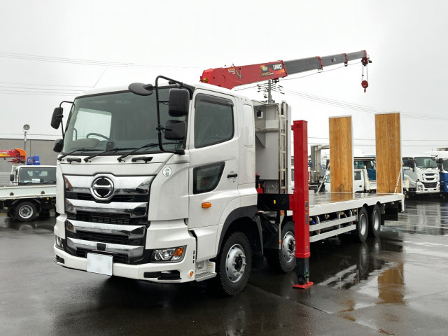 北海道車体セルフクレーン ユニック4段 (2.93t)URG504AHNRA1 ラジコン フックイン 警報型 自動あゆみ付 串刺しボデー 床フック23個 リターダ F7 ETC2.0 リアエアサス 未使用車