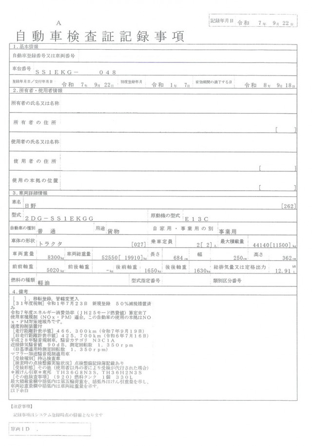 車検付 令和8年9月迄 R1 日野 プロフィア トラクターヘッド 2デフヘッド ハイルーフ 6×4 3軸2デフ 後輪エアサス 450馬力 プロシフト AT 電源コネクター 豚鼻 ブタ鼻 電源コード 10t 53t 大型 牽引