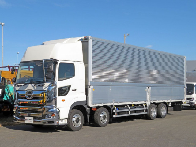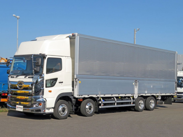 未使用・4軸低床・アルミウイングが入荷いたしました。 ミッションはMT7速・エンジンは380馬力・電磁式リターダ付きです。 荷台内寸は(L=9.60m、W=2.40m、H=2.67m、門高=2.57m)で積載量は14,000㎏とれております。 キャビンはハイルーフ仕様で、キャブメッキも多数ついている見た目もかっこいい車両です。 是非この機会にお問い合わせください!