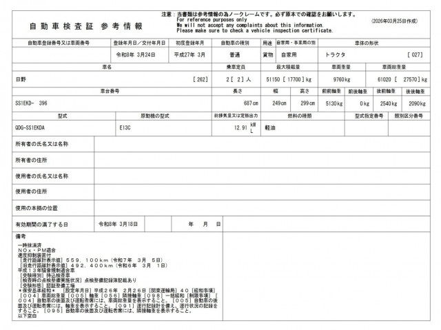 | メーカー/車名 | 日野 プロフィア |
