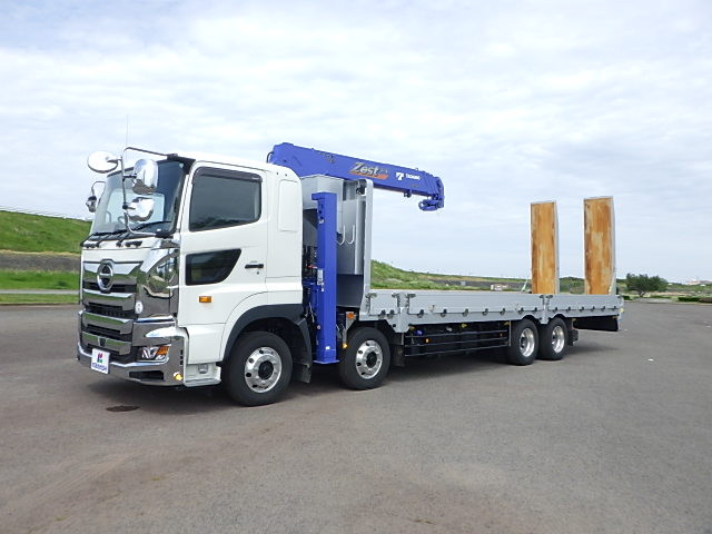北海道車体(24 5 53) 床板張 内カン5×2 ロープ穴4×2 中柱2×2 自動歩み板付 ウインチ(明治自動車)ラジコン付き タダノ (TM-ZX504SL)ハイアウトリガ張り出しオートスライド付 2.93t 4段 ラジコン・フックイン ABS・エアバック ENG/TMリターダ 後輪エアサス アドブルー 燃料タンク300L1個 別体タコグラフ タイヤサイズ265/70R19.5