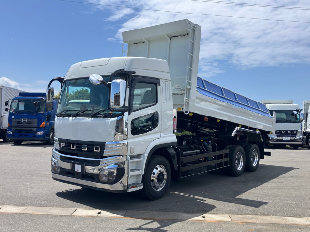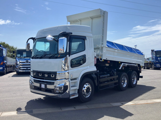 未使用・MT7・ハイルーフ・極東製の25t土砂禁ダンプです。 ボディ内寸はL=9.00m W=2.30m H=1.65mで積載は10,900kgとなっております。 上物の立米数は約34.1立米、後扉は片開きとなっております。 材質は床がハードックス4mm、前壁・横壁・後扉が高張力鋼板3.2mmです! キャブ周りメッキ仕様、フロントリップ/アルミホイール/リヤフレーム間工具箱装着 工具箱・フェンダーはステン製と整った車輛です!