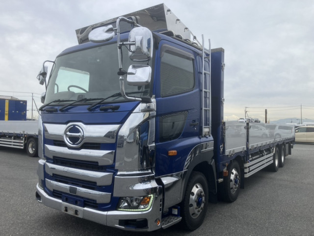 ・アルミブロック平ボディー ・最大積載量:13600㎏ ・後輪エアサス ・リターダー ・エンジン型式:A09C ・4軸低床 ・アルミホイール ・蝶番ステンレス ・ロックバーステンレス ・5方開 ・メッキフロントバンパー ・メッキグリル ・メッキコーナーパネル ・メッキミラー ・内フック ・スタンションホール ・プロシフト