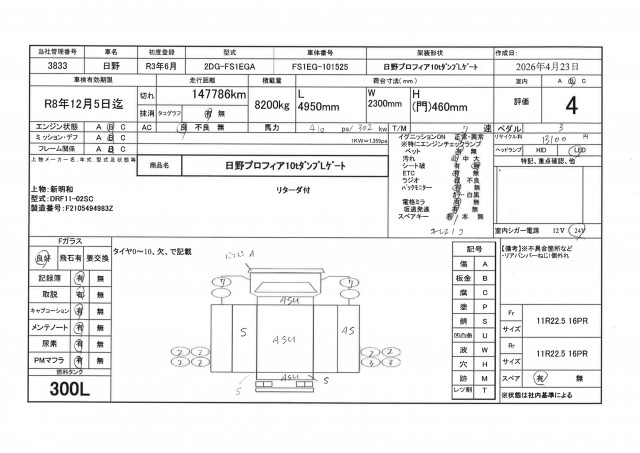 | サイズFR | 11R22.5 16PR |