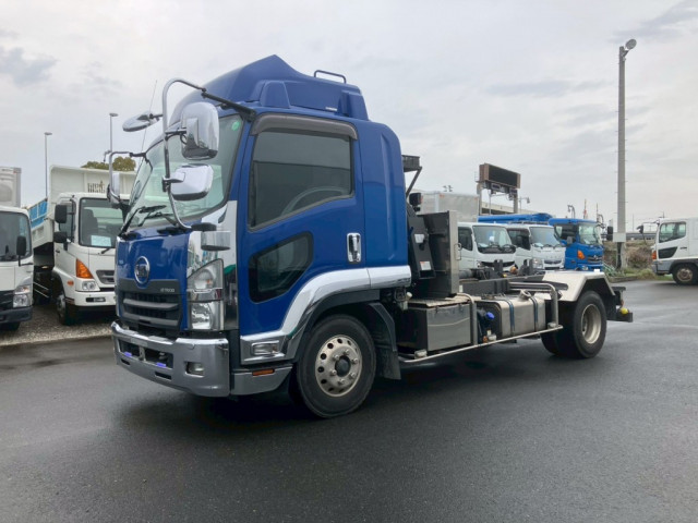 コンテナ専用アームロール 極東開発 積載3.85t ベッド付 エアコン パワステ ターボ ツインホイスト ルーフキャリア BDG- 3次排ガスクリア