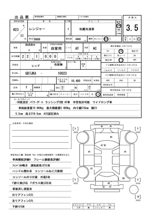 | メーカー/車名 | 日野 レンジャー |