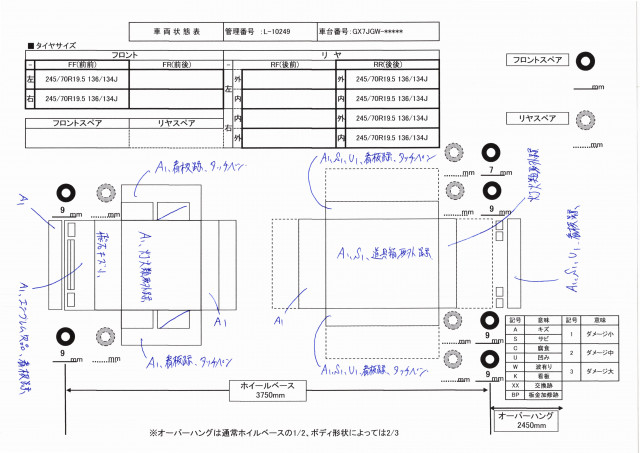 ▲フロントガラス:飛石キズ小▲クラッチペダル:やや浅い▲ミッションケース付近:オイルにじみ・汚れ▲エンジン周辺:オイルにじみ、汚れ▲下回り・シャーシ:各所サビ▲エアドライヤー:オイル汚れ▲タコグラフ欠品▲キャビン外装:看板跡、エンブレム欠品:ヘッドライトレンズ左側くもり▲キャビン内装:電装品取外跡(アンプ・操作盤欠品):灰皿欠品、マップランプ一部不灯、コンセント不良※他、詳細はお問い合わせ下さい