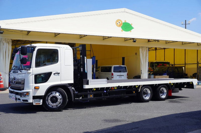 7速MT 大型 三軸 リターダ セルフローダー 造りボディー タダノ製ハイジャッキ ウインチ ウインチ能力8.0トン アユミ板掛け(アングル) 落とし込みフック スタンション穴 アルミホイール LEDヘッドライト フォグランプ 左電格ミラー 坂道発進補助 シートヒーター 衝突軽減ブレーキ 車線逸脱警報 車両安定性制御装置 社外テール サイドマーカー 作業灯 ガッチャボックス