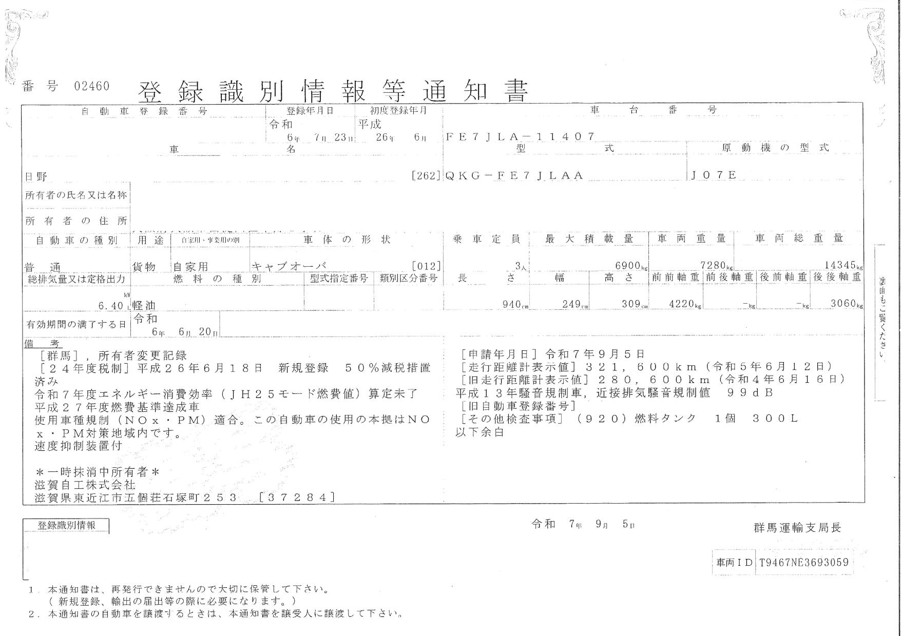 車検 | 抹消 |