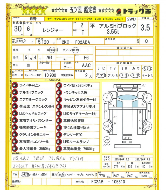 ★平★アルミHiブロック★ワイドキャビン★ワイド幅×580ボディ★トランテックス製★床ステン張り★エアロルーフラック★キャビン左右ダラー付★着脱式リアアオリ支柱★LEDサイドマーカー4対★LEDヘッド&フォグ★左右アオリバランサー★衝突被害軽減ブレーキ★TRC&横滑防止装置★デンソーETC★クラリオンBモニター★左右天井コンソール★LEDルームランプ★