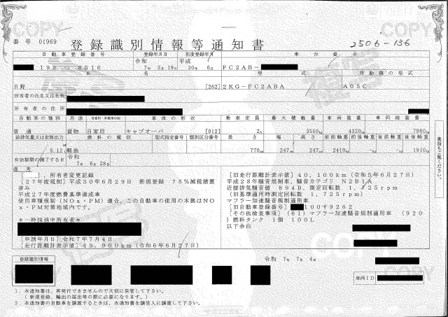 | 車検 | 抹消 |