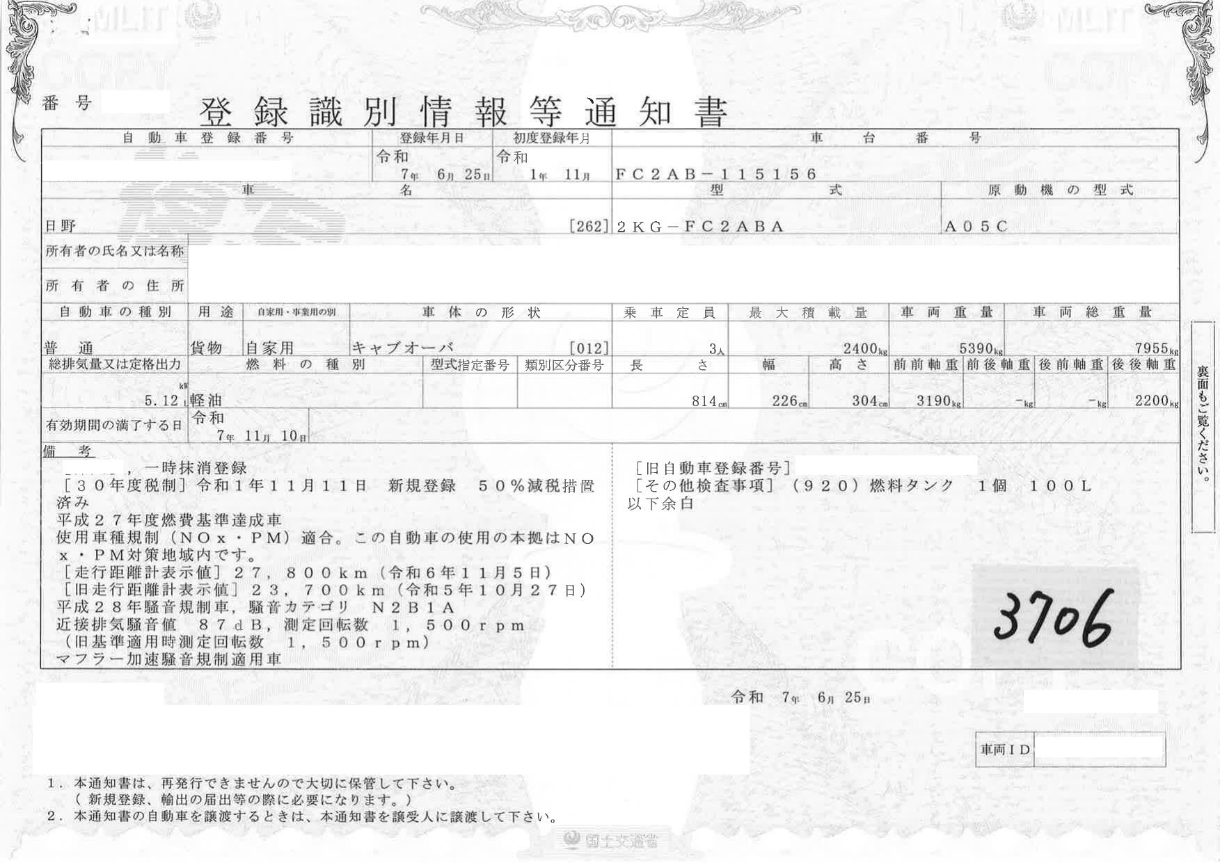 | 車検 | 抹消 |