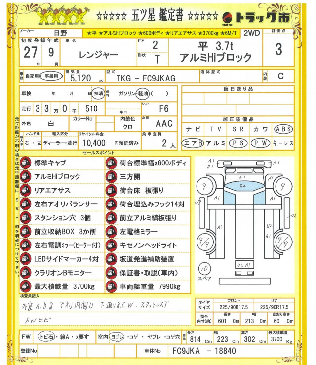平ボディ☆アルミハイブロック☆リアエアサス☆600ボディ☆あおり開閉補助装置☆荷台埋め込みフック14対☆スタンション穴3個☆前立アルミ縞板張り☆前立収納BOX☆LEDサイドマーカー4対☆バックカメラ☆左右電動調整ミラー(ヒーター付)