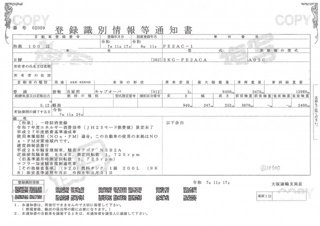 | 車検 | 抹消 |