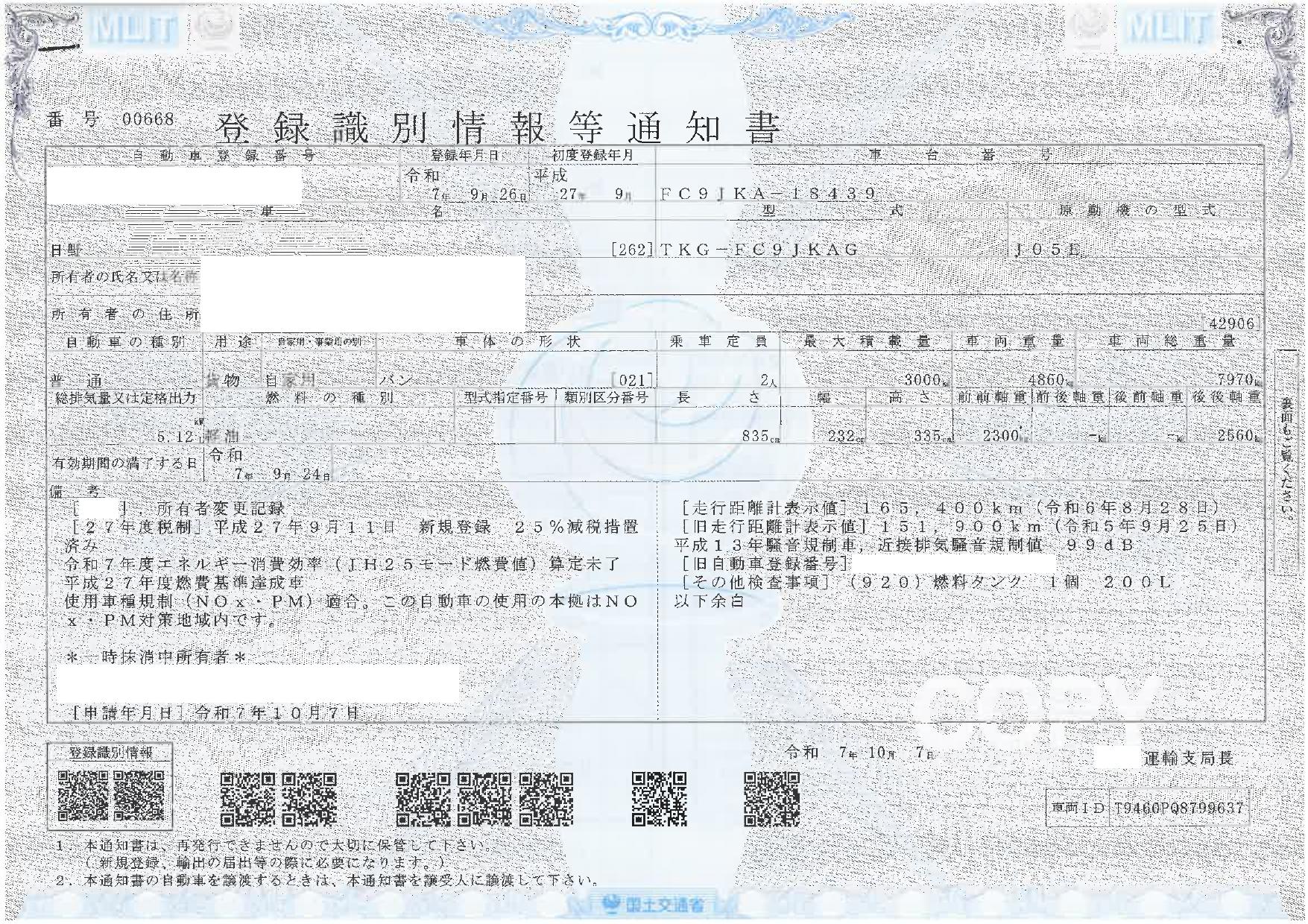 ※抹消車両は、登録時最大積載量が減トンされる可能性が御座います。