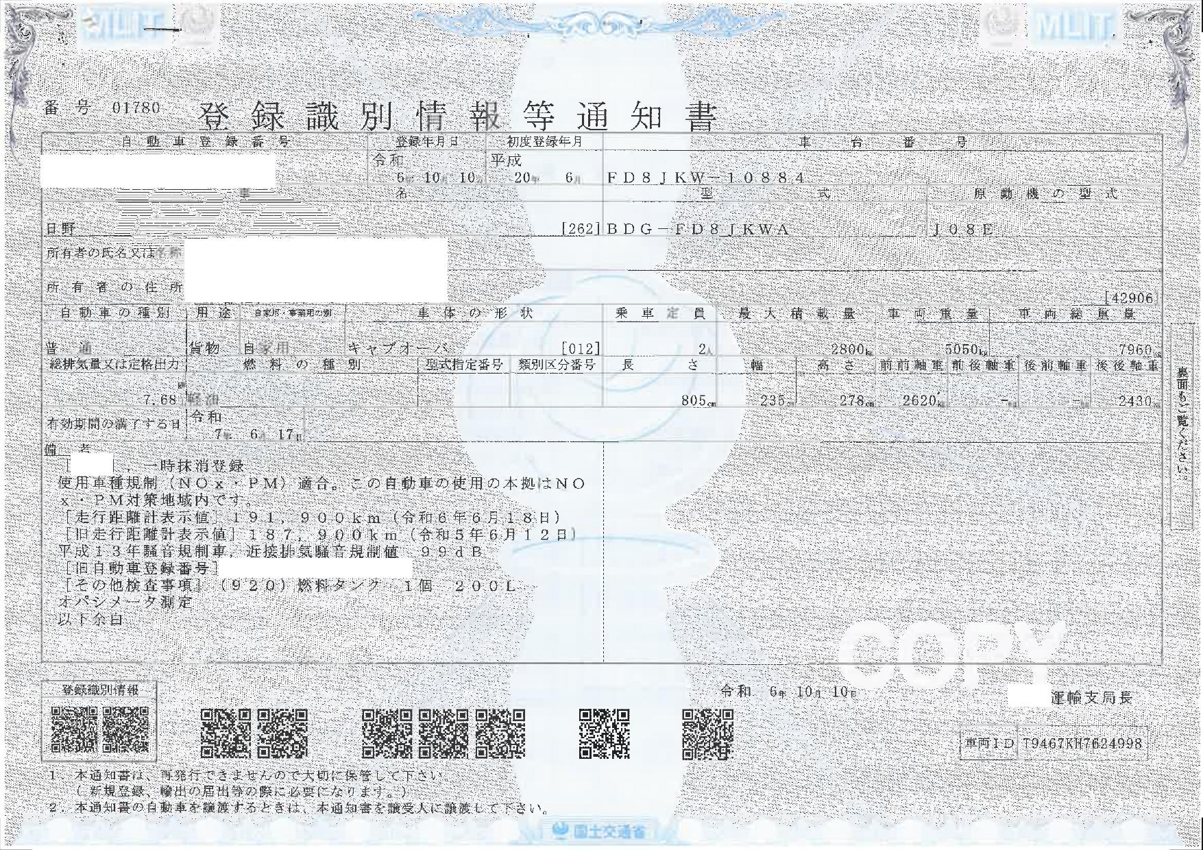 ※抹消車両は、登録時最大積載量が減トンされる可能性が御座います。