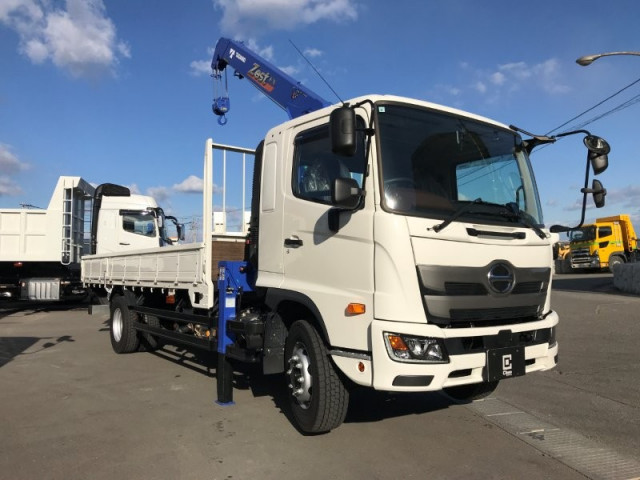 ★令和7年式/日野/レンジャー/増トン/登録済未使用車! ★標準幅/ベッド付/7.7トン積載/リーフサス/240馬力 ★古河ユニック/新型G-FORCE SAFETY/URG374AWRA1 ★警報仕様/RA1(ML警報型)/過負荷警報・高さ制限装置 ★4段ブーム/2.9t吊り/超ワイド角足アウトリガ/前方格納