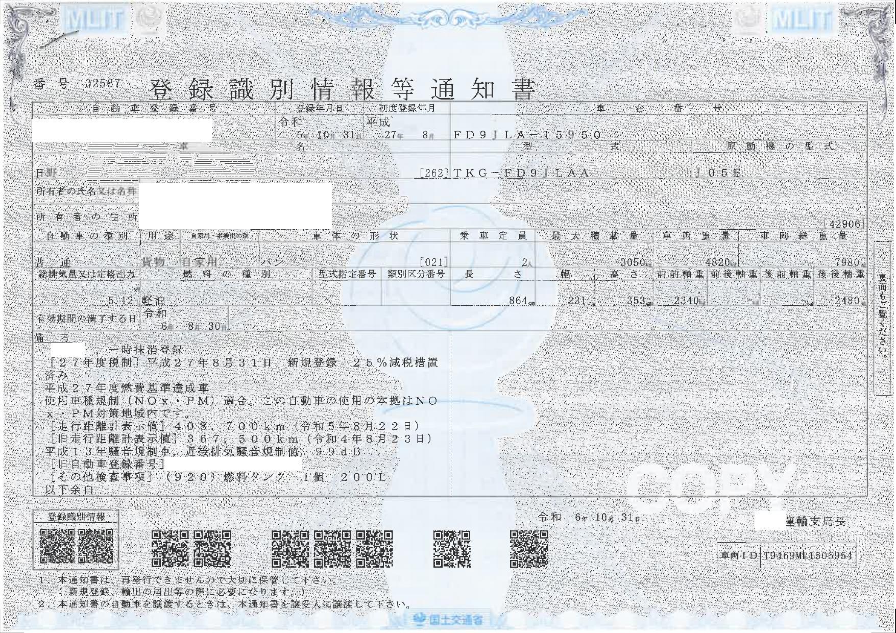 | 車検 | 抹消 |