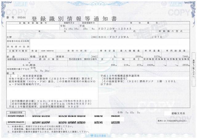 | 車検 | 抹消 |