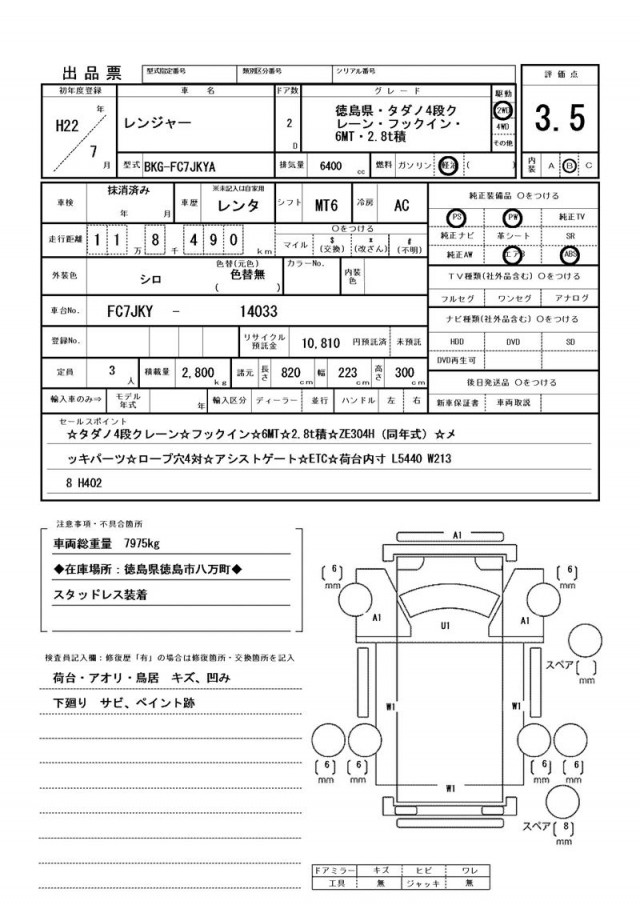 スタッドレス装着・荷台・アオリ・鳥居 キズ、凹み・下廻り サビ、ペイント跡