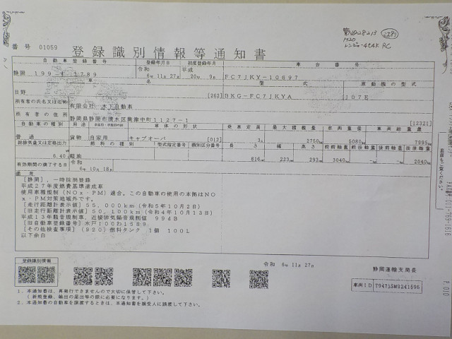| 車検 | 抹消 |