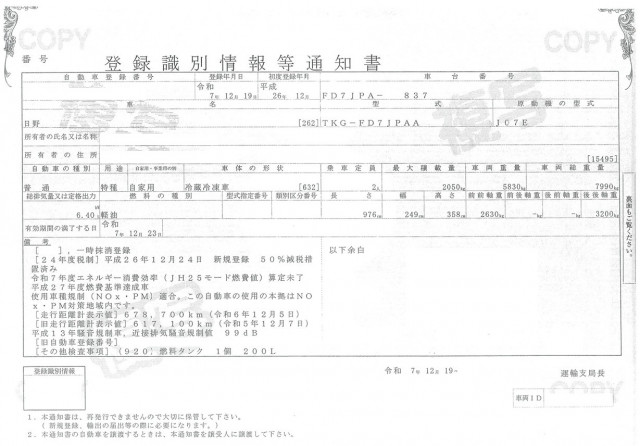 | 車検 | 抹消 |