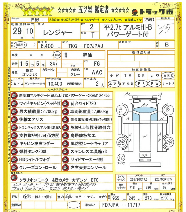 平ボディ☆アルミブロック☆マルチゲート(跳ね上げ式パワーゲート)☆後輪エアサス☆ベッド付き☆荷台ワイド×720☆アオリ上部幌骨取付穴☆支柱取り外し可☆5方開☆鳥居鉄板加工☆坂道発進補助装置☆クルーズコントロール☆バックカメラ☆ETC☆6MT