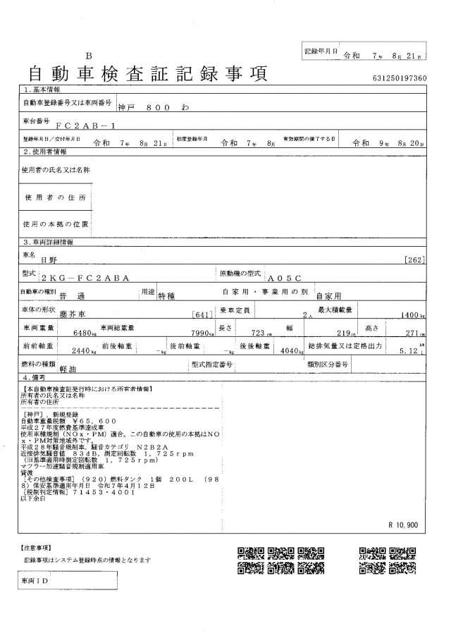 | 型式 | 2KG-FC2ABA |
