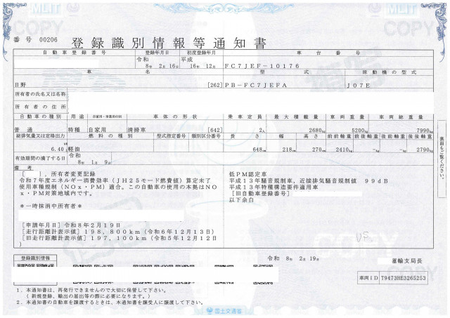 | 車検 | 抹消 |