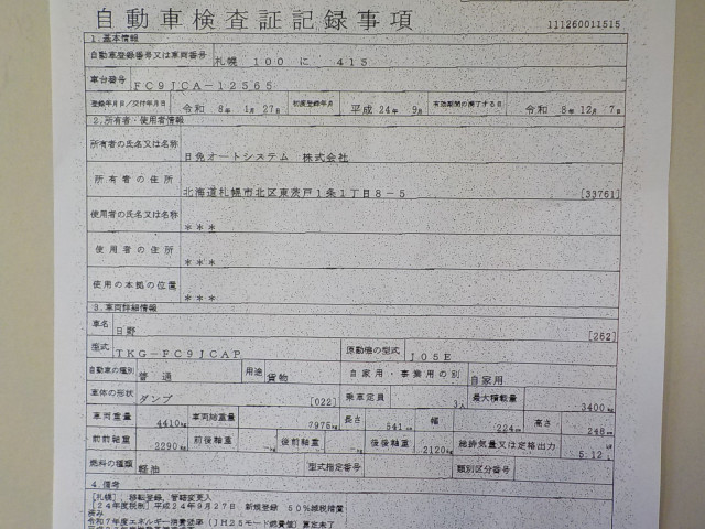 ◆平成24年式◆4t深ダンプ◆土砂禁◆6MT◆フル装備◆エアバッグ◆走行86000Km◆ディーゼル◆排気量5120cc◆積載3400kg◆3人乗り◆