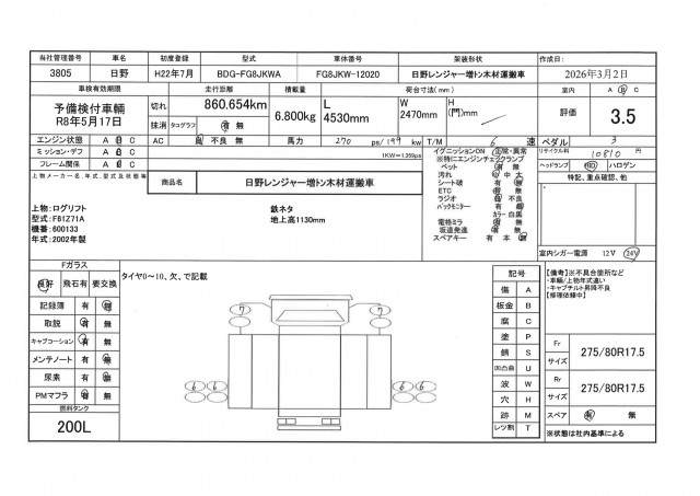 | サイズFR | 275/80R17.5 |
