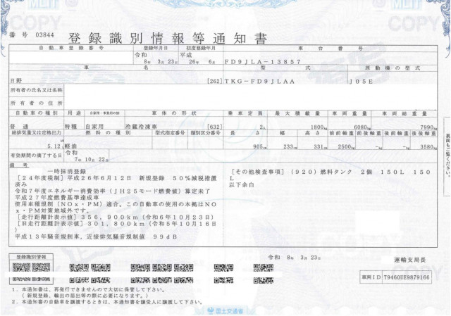 | 車検 | 抹消 |
