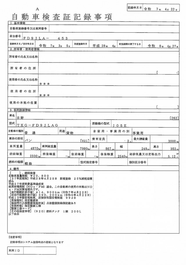 | 走行距離 | 417,346(km) |